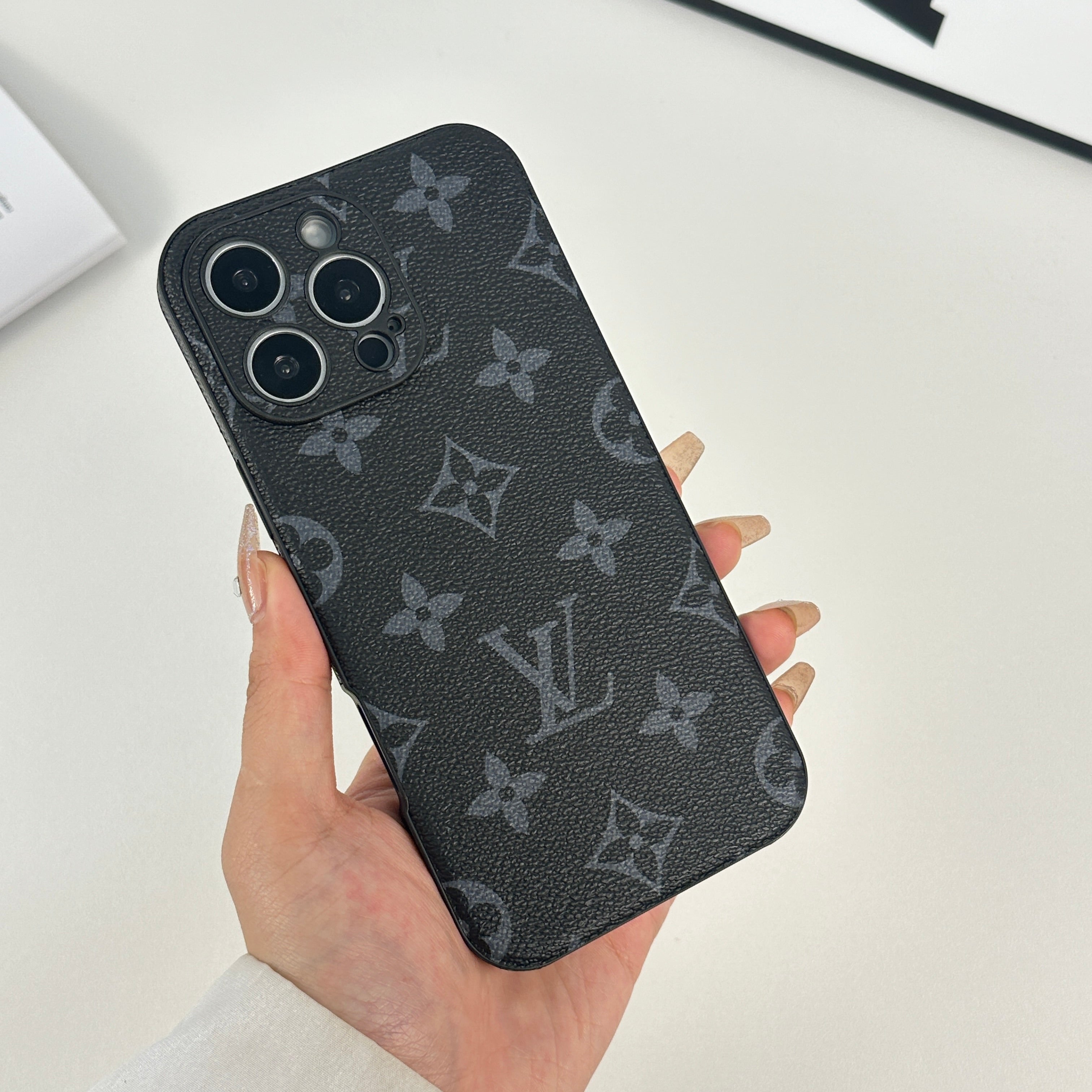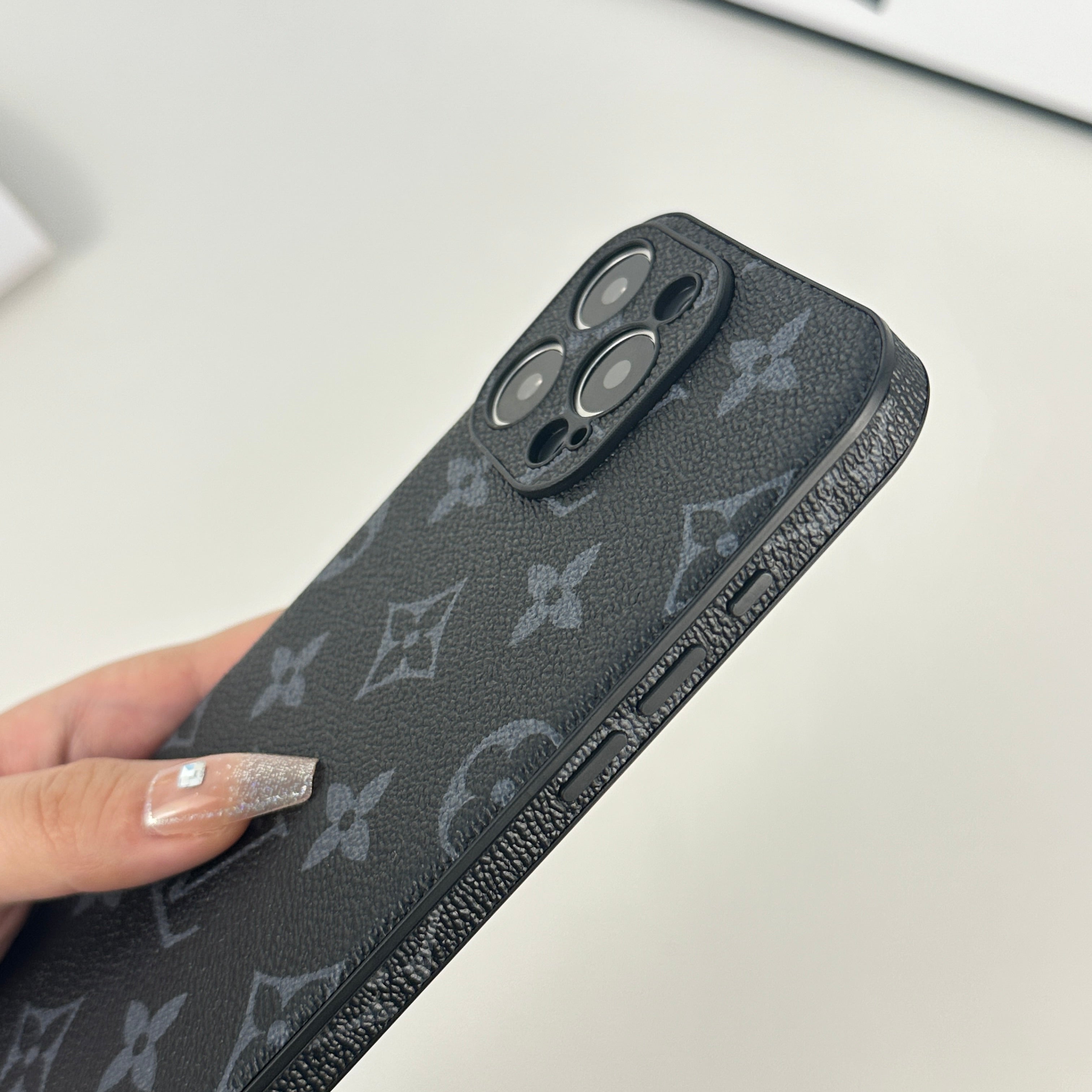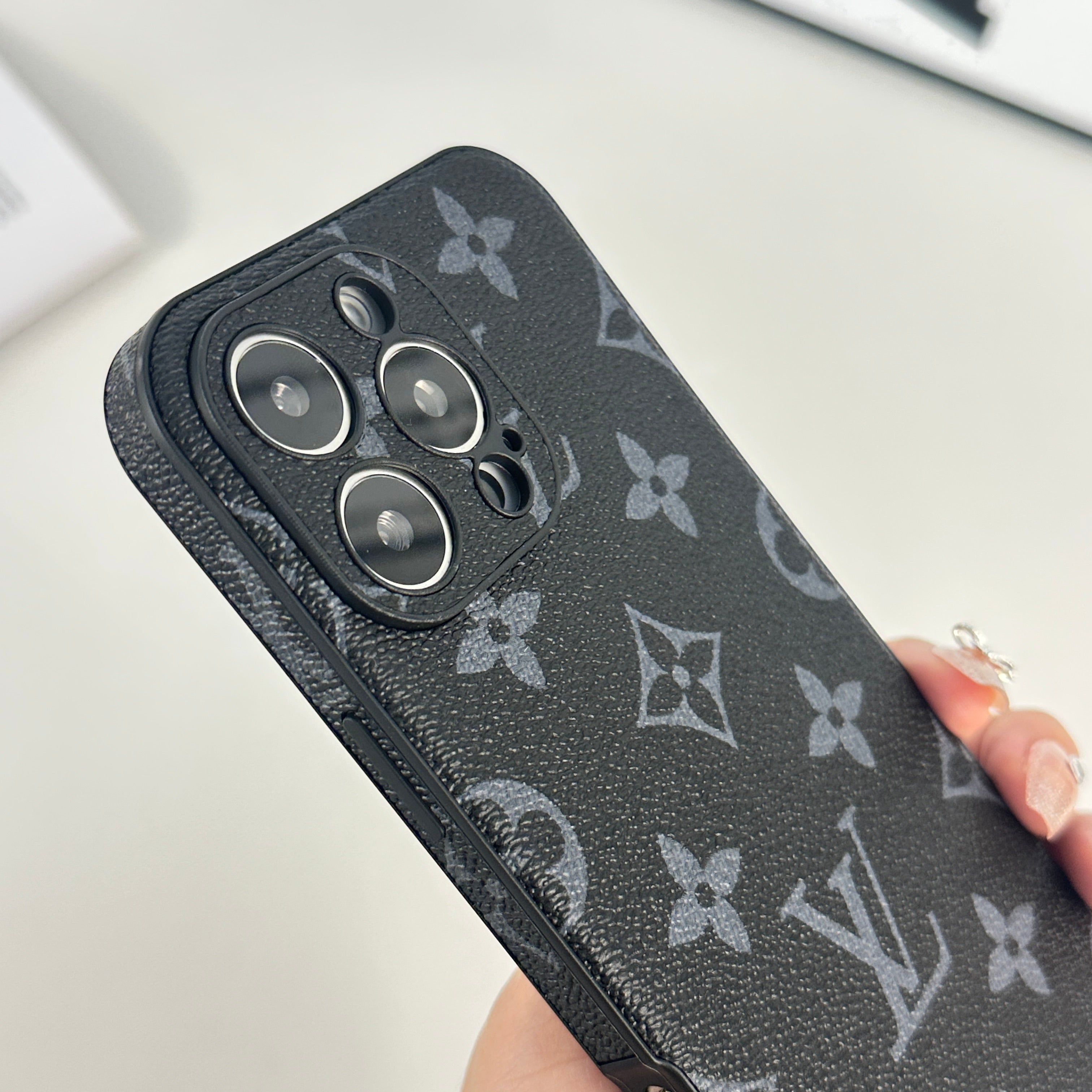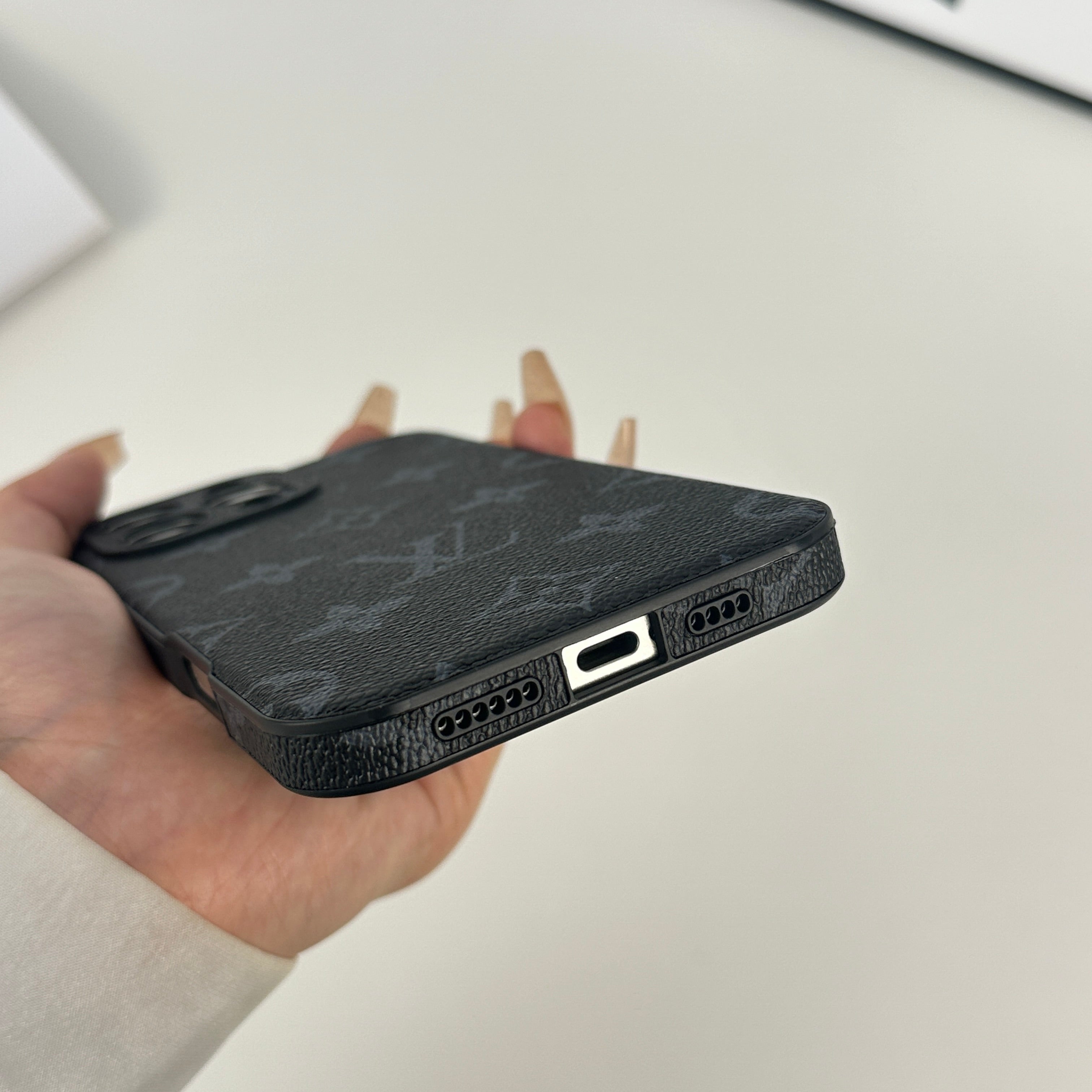エレガントなモノグラム黒プリント: 洗練されたデザインで上品さを強調。