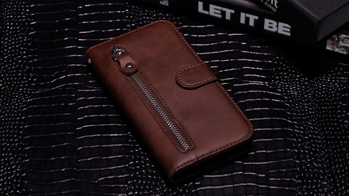 スタイリッシュな茶色の牛革iPhoneケースには、安全なジッパー財布と手帳型カードケースが装備されています。高品質の革を使用し、スマートフォンを丈夫に保護するだけでなく、実用性も備えているという点で、完璧な選択です。